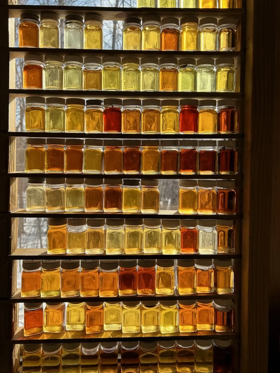 All maple syrup is graded on light transmittance - golden, amber, dark, and very dark. You can't taste light, so we prioritize flavor. Using gas chromatography and mass spectrometry (GC-MS) we have identified the molecules in our syrup that you can smell and taste.